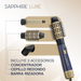 El mismo cuenta con tres accesorios: el concentrador que seca parcialmente el cabello para prepararlo para el peinado, el cepillo redondo de cerdas mixtas, el cual es ideal para crear volumen desde la raíz y darle forma a estilos más estructurados, y, por último, el rizador cónico de cerámica, que crea rizos hermosos y de aspecto natural.