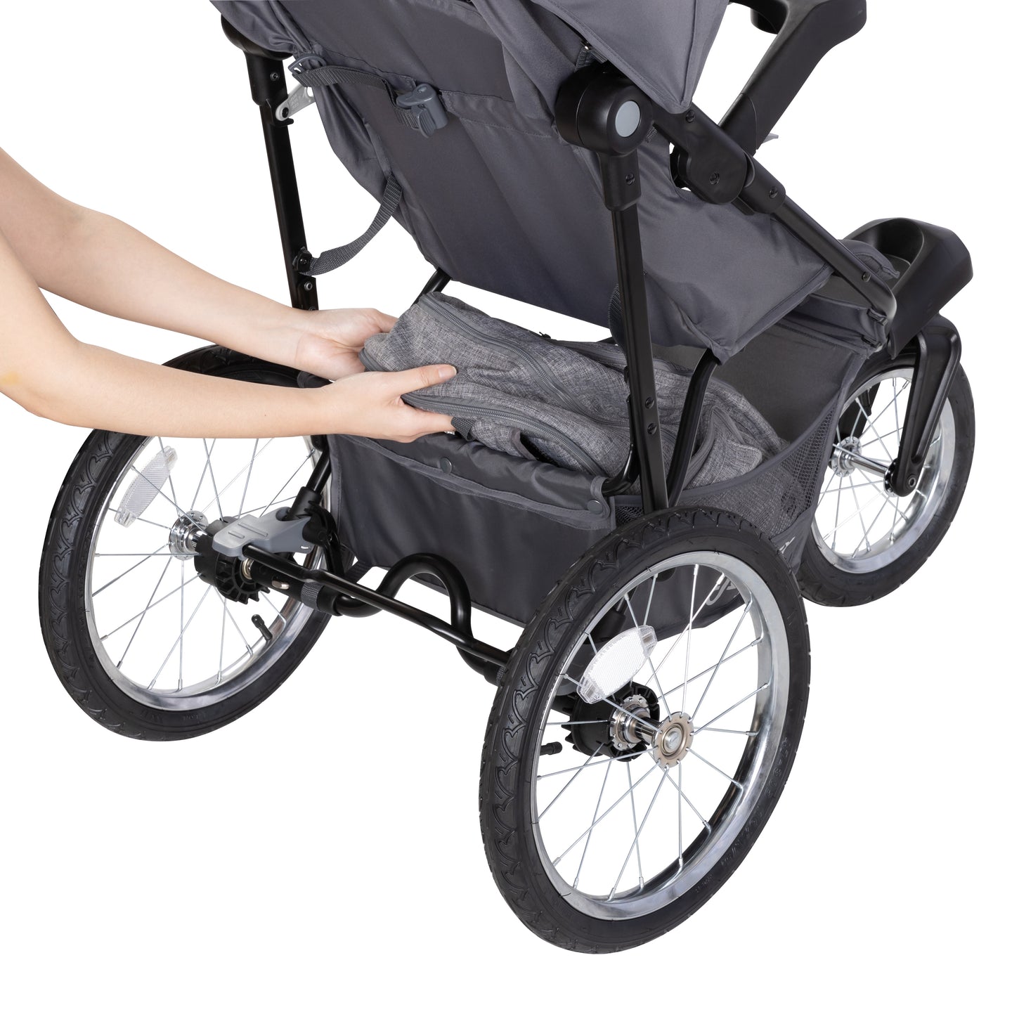 La carriola para correr Baby Trend® Journey convierte cada salida en una actividad divertida. La bandeja para padres, con dos portavasos y una consola central, ofrece un amplio espacio para guardar lo esencial. La bandeja para niños cuenta con portavasos y un área para refrigerios, para que tu pequeño pueda disfrutar de sus delicias mientras explora el mundo. Cada detalle está fabricado con esmero. La amplia capota con trinquete protege a tu hijo de la luz solar y otros elementos, mientras que el arnés ajustable de 5 puntos y los múltiples modos de reclinación del asiento garantizan un paseo seguro y cómodo. Con ruedas delanteras de 28 cm y traseras de 40 cm, nuestra carriola se desplaza con facilidad y suavidad en diversos entornos. El amplio y resistente reposapiés proporciona a tu hijo soporte y comodidad en viajes largos. Adaptándose a las diversas necesidades diarias, esta carriola garantiza que cada experiencia de correr sea agradable e inolvidable.