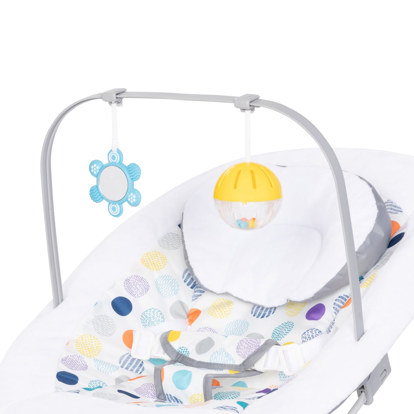 La mecedora Smart Steps® My First Rocker 2 es la manera perfecta de calmar a tu bebé: ¡mecedora y hamaca en uno! La barra giratoria se ajusta fácilmente para convertirla en hamaca. El modo estacionario también le ofrece a tu bebé tranquilidad, un lugar seguro y cómodo para sentarse durante todo el día. La unidad de vibración incluida calmará fácilmente a tu pequeño. Esta mecedora está equipada con juguetes STEM, centrados en ciencia, tecnología, ingeniería y matemáticas para despertar la curiosidad y el desarrollo de tu bebé. Estos juguetes incluyen un espejo de silicona y una pelota sonajero interactiva para entretener a tu bebé y estimular su movimiento. ¡Estos juguetes son extraíbles y puedes llevarlos de viaje para que te diviertas dondequiera que estés! El reposacabezas extraíble y el arnés de 3 puntos ofrecen soporte y seguridad a tu bebé, ¡y te brindan tranquilidad!