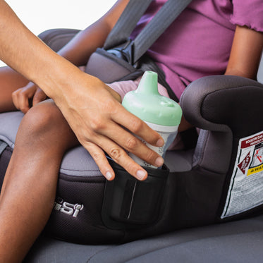 El asiento elevador combinado Baby Trend® Hybrid™ SI 3 en 1 con protección contra impactos laterales proporciona seguridad y comodidad óptimas para su hijo en crecimiento. Este asiento elevador, con diseño deportivo y orientado hacia adelante, ofrece valor para toda la familia, ya que puede usarse durante largos periodos con un arnés de 5 puntos, además de los modos elevador con respaldo alto y sin respaldo. El reposacabezas ajustable en altura proporciona una protección y comodidad superiores contra impactos laterales. Las almohadillas laterales para impactos laterales, fijadas al lateral del armazón de la silla, brindan mayor seguridad y protección a su pequeño en caso de colisión. Los insertos reversibles y suaves, y los dos portavasos, brindan comodidad, versatilidad y practicidad para el niño en crecimiento.